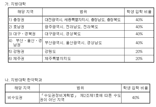 ◈ 2023학년도 대입전형부터 지방대학 의·약·간호계열 지역인재 40%(강원·제주 20%) 선발 의무화