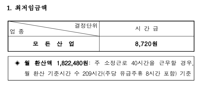 ◈ 월 환산액 1,822,480원: 주 소정근로 40시간을 근무할 경우,
