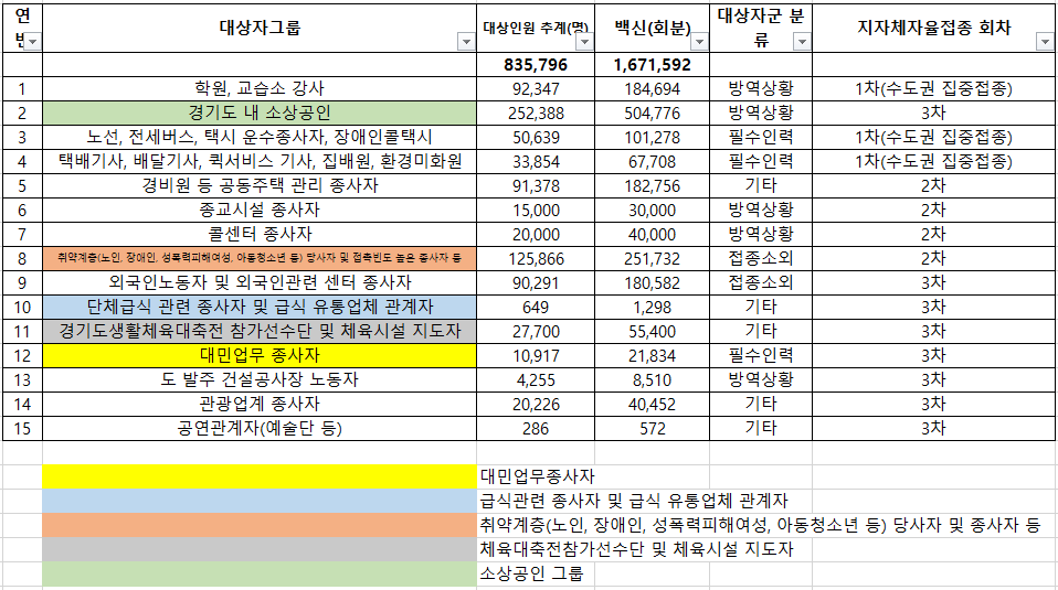 (긴급) "코로나19 예방접종 자율접종 " 과 관련하여 종교시설 종사자중 자율접종 대상자를 파악하고 있습니다.