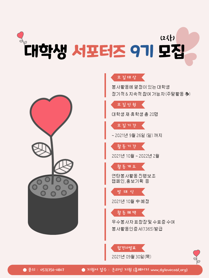 ∙ 홈페이지(http://dglovecoal.org)에서 지원서를 다운받아 작성 후 메일 접수