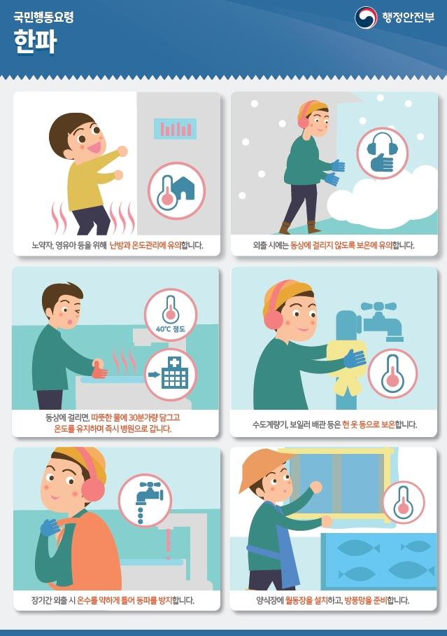 - 어린이, 노약자 등은 사전에 연락처를 확인하고 한파 대처 상황을 꼼꼼하게 챙깁니다.