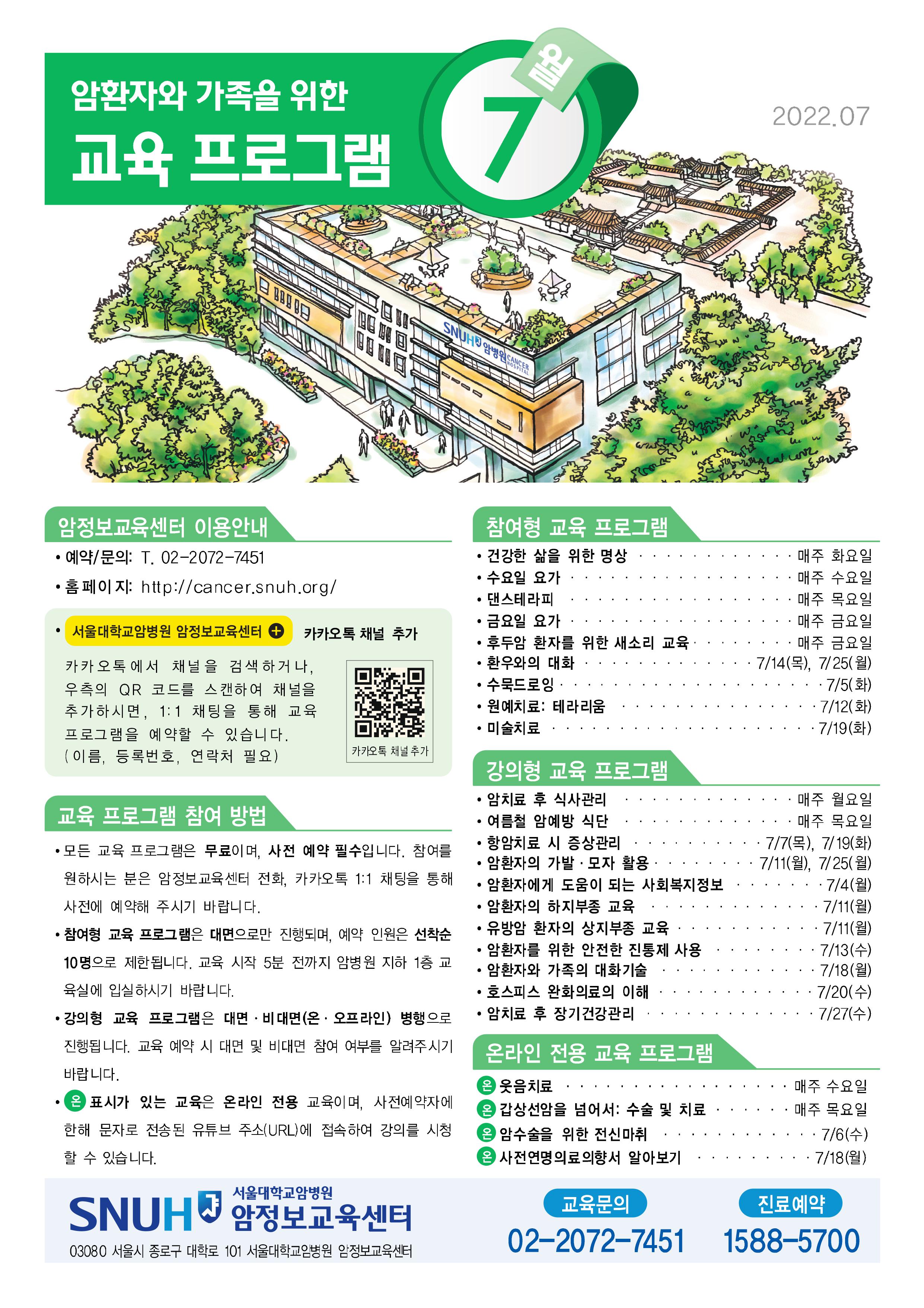 서울대학교병원 암정보교육센터 2022년 7월 교육 프로그램 안내입니다.