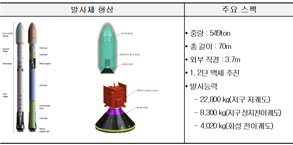 ※ 발사일시는 기상상황 및 발사용역업체(Space-X社)와 협의상황 등에 따라 변동가능