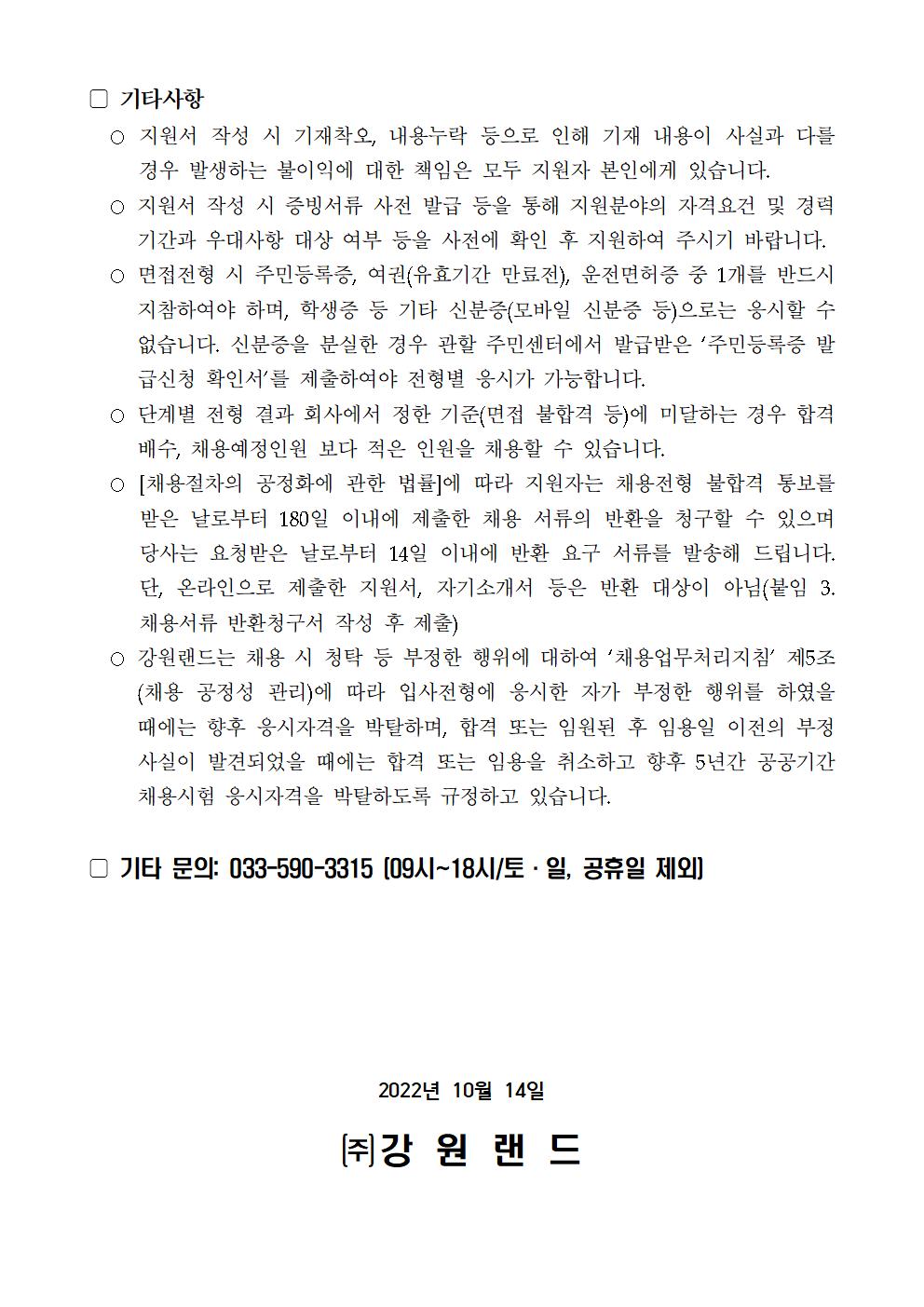 (주)강원랜드에서 2022년 동계 특수직무 아르바이트를 모집하고 있다.