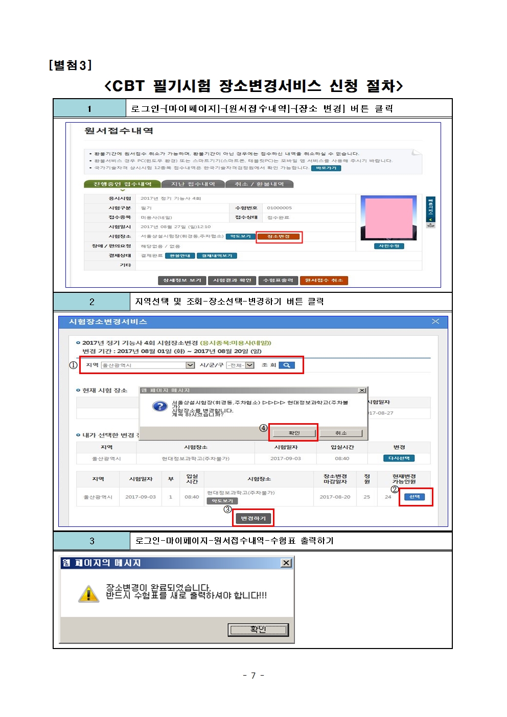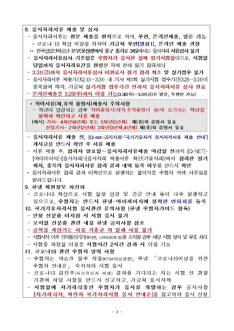 - 「방역수칙 단계별 국가기술자격 시험 시행방안」에 따라 방역수칙을 철저히 준수