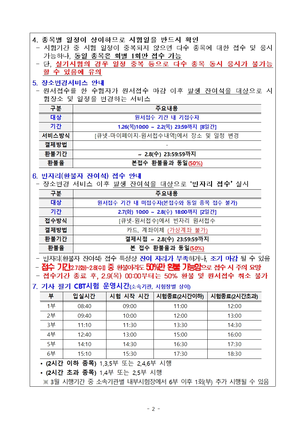 수험자 여러분께서는 붙임 내용을 참고하시어 원서 접수 및 응시에 착오 없으시기 바랍니다.