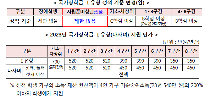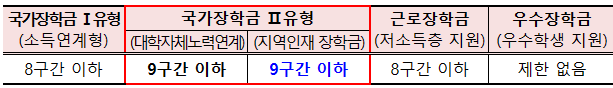 ※ (’23년 2학기부터) 만 40세 이상은 국가장학금 Ⅰ유형으로 지원