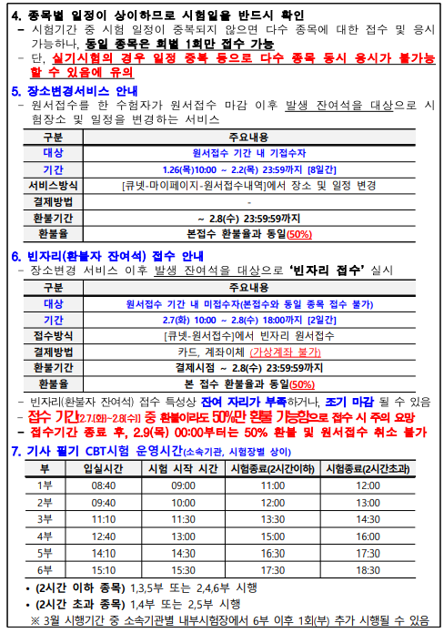 수험자 여러분께서는 붙임 내용을 참고하시어 원서 접수 및 응시에