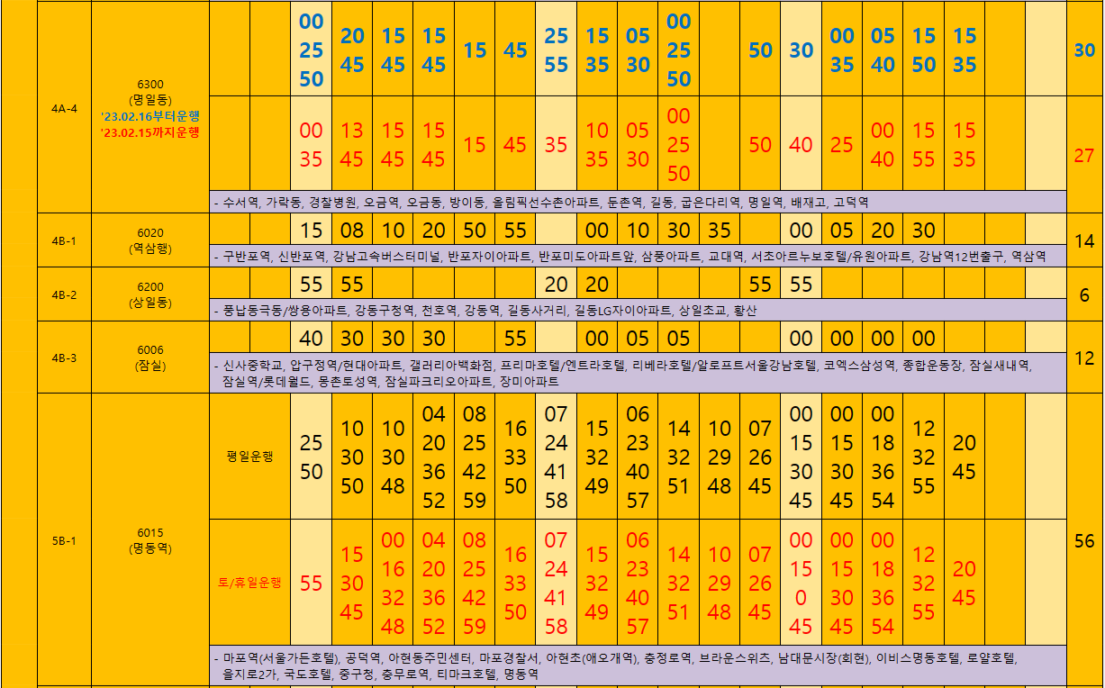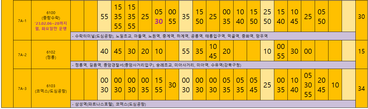6705(잠실/동서울)'23.02.21부터운행'23.02.20까지운행