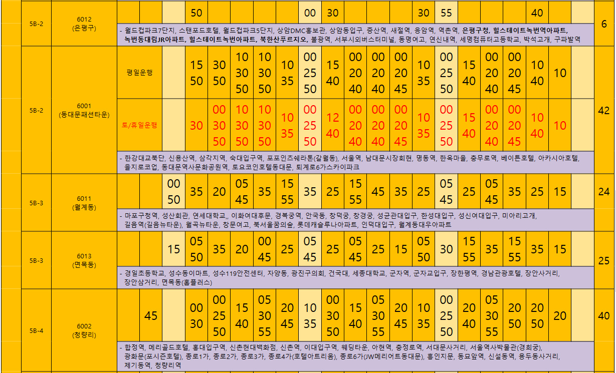 ※ 운행시간은 운수사의 사정에 따라 예고없이 변경될 수 있습니다.