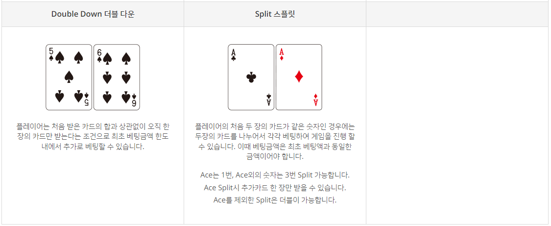 - 딜러는 두 장의 카드 합이 16이하일 경우 17이상이 될 때까지 추가 카드를 받아야 합니다.