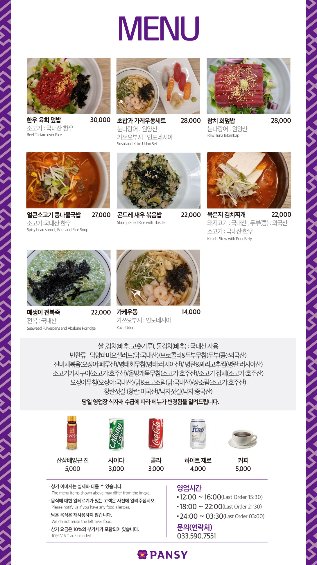 2023년 4월 강원랜드 레스토랑 팬지 메뉴가 업데이트 되었다.