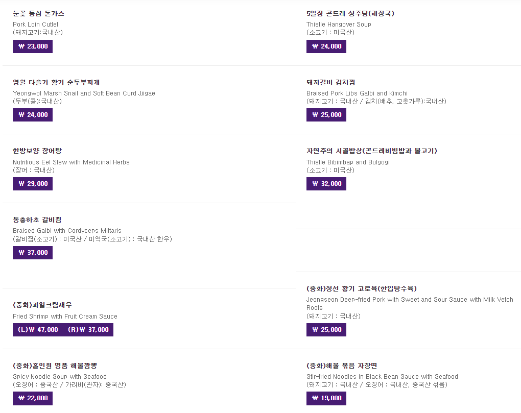 한식요리 10:30 ~ 15:00 (Last Order 14:30)