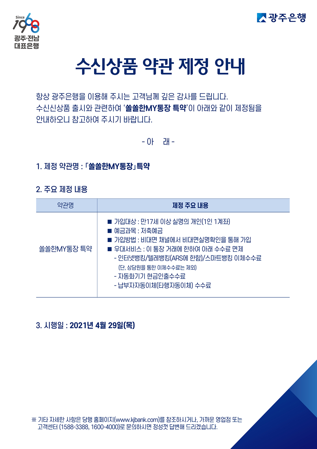 광주은행의 쏠쏠한MY통장을 비대면 채널에서 비대면실명확인을 통해 가입하면 많은 부분 수수료가 면제가 된다.