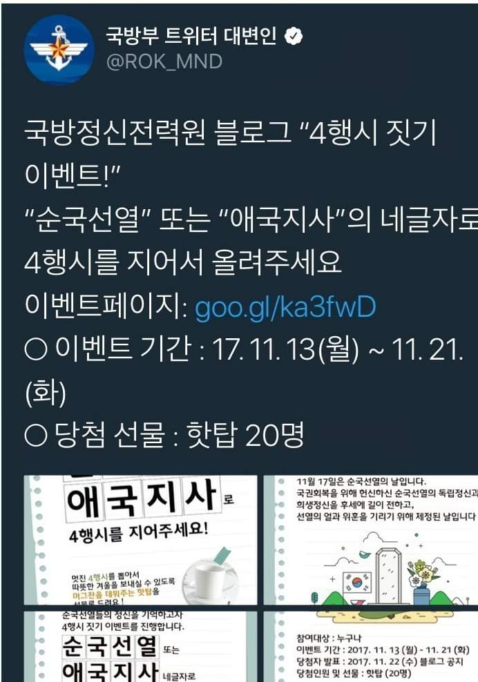 국방정신전력원 블로그 4행시 짓기 이벤트 중
