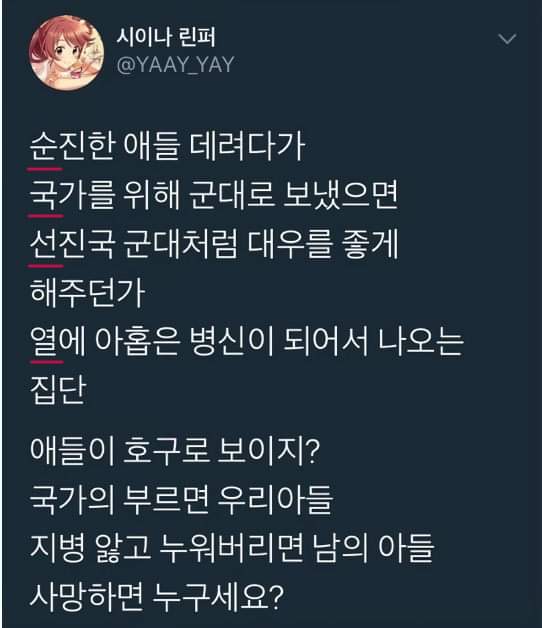 국가를 위해 군대로 보냈으면